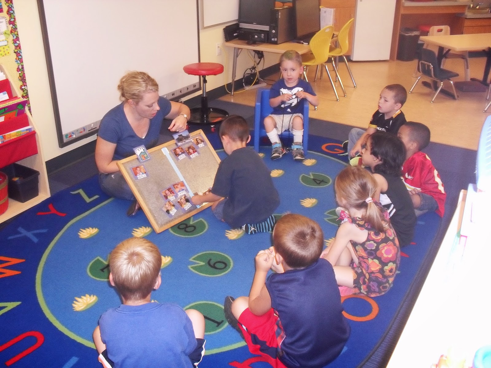 We're really getting into our arrival routine. We discuss who is at school that day and then hold hands and sing our hello song. During the song we say hello to each person in the circle.